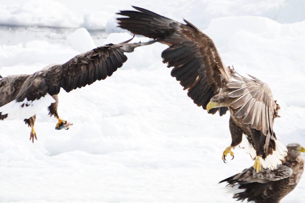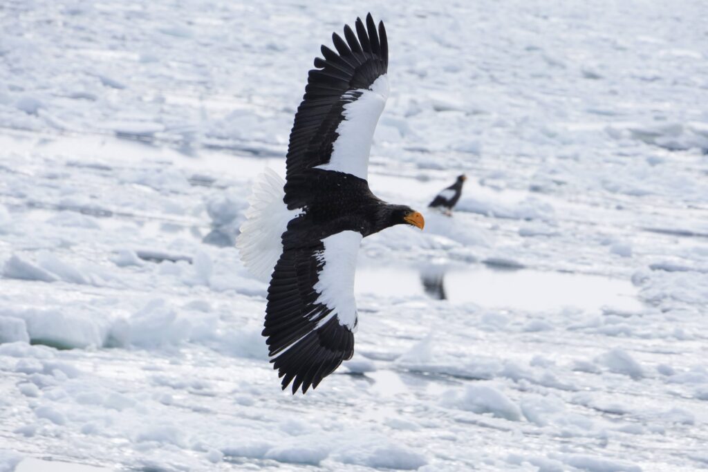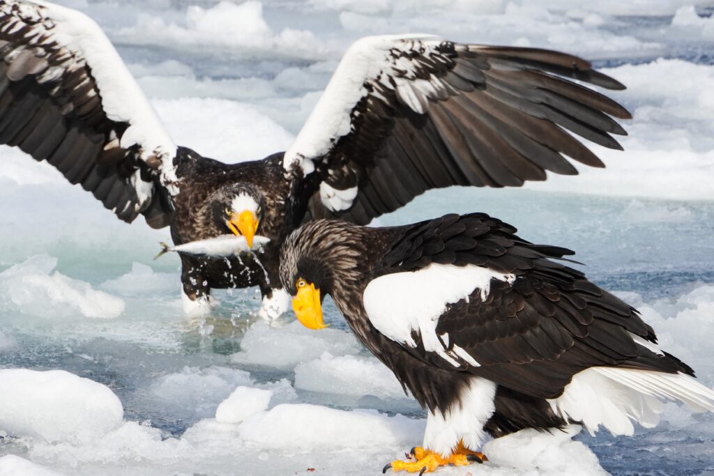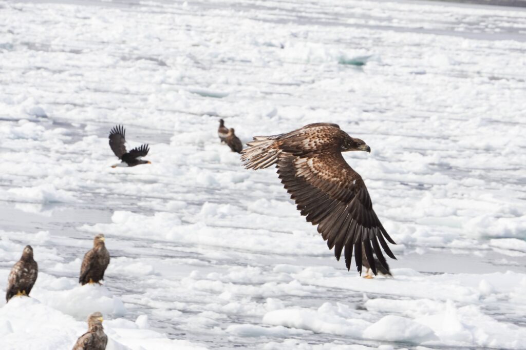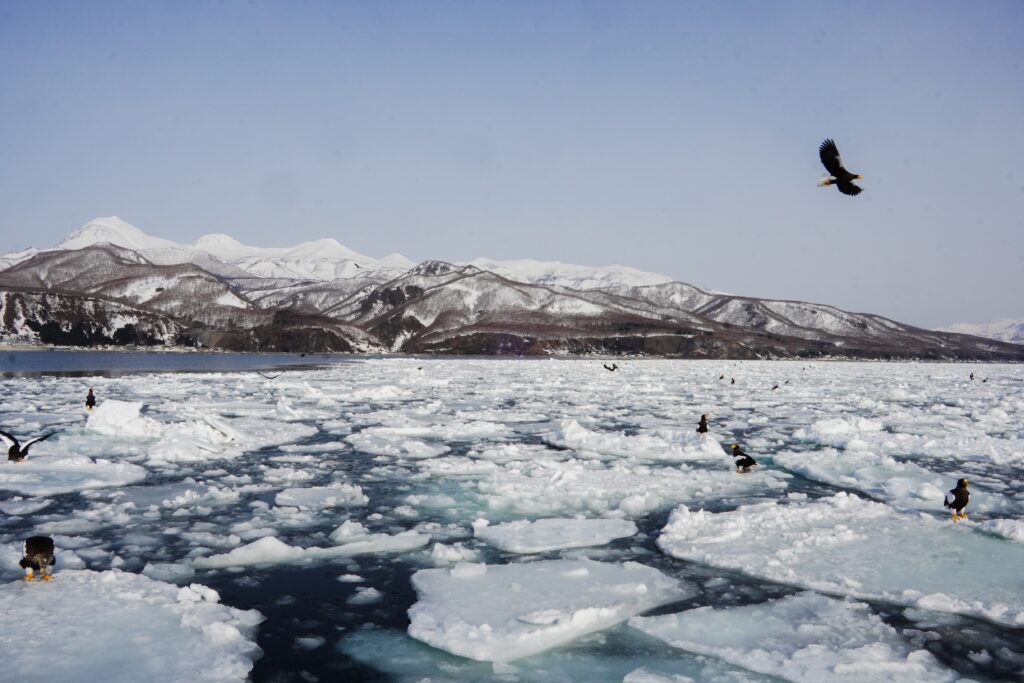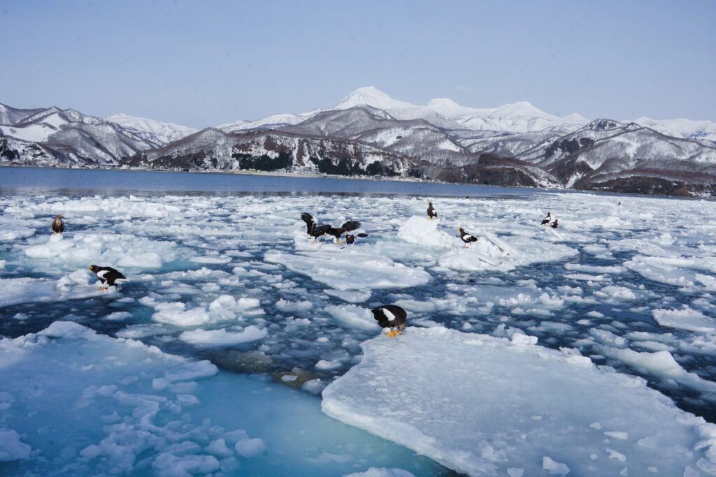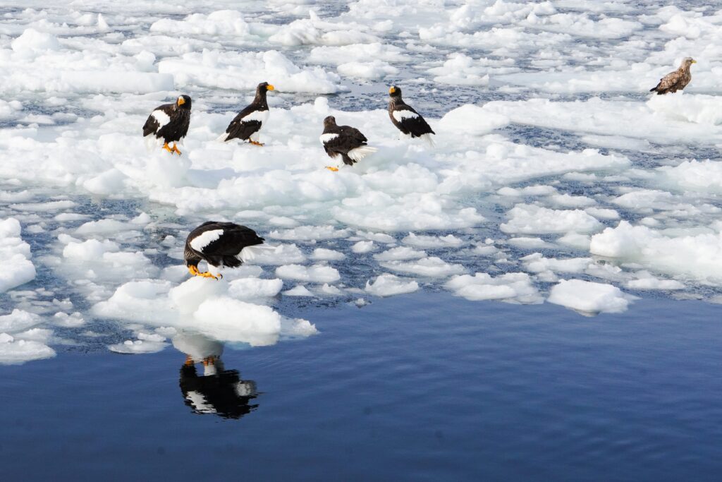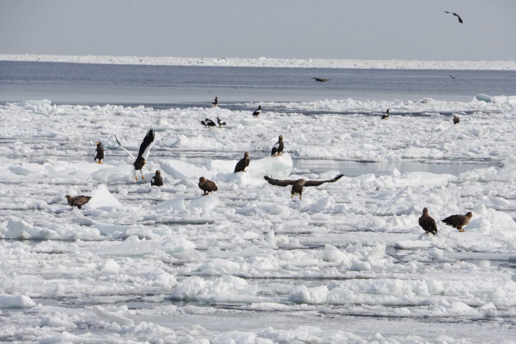 Setting out from Rausu port on a 9:00 am cruise, we encountered the sea ice within minutes. Perched upon the ice were countless Steller’s sea eagles and white-tailed eagles. It was a breathtaking scene, teeming with life.